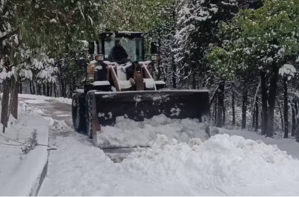 行动中,该局党员干部充分发挥先锋模范作用,在铲雪车和消防吹风机清除路面厚层积雪后,积极使用铁锹和扫把进行深度扫雪除冰,大家不惧寒冬、冲锋在前,分工协作、热情满满。经过全力奋战,寿县八公山林场公墓园区道路积雪基本清除,有效保障了群众的祭祀需求。